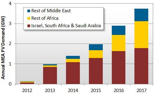 «Ιστορικά, η περιοχή της Μέσης Ανατολής και της Αφρικής χαρακτηριζόταν από καθυστέρηση στα φωτοβολταϊκά, αλλά τώρα αρχίζει να συμβαδίζει. Ως το 2017, προβλέπεται να φτάσει στα 3,7 GW η ετήσια ζήτηση, με προοπτικές να αγγίξει τα 9 GW στο μέλλον», σημείωσε η Σουζάν βον Άιχμπεργκερ, αναλύτρια της Solarbuzz.